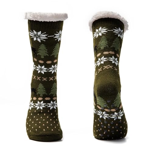 JOMIX Chaussons Chaussettes Homme Chaussettes Antiderapantes pour Homme Chaussette Antiderapante d'hiver épaisses et Chaudes pour Hommes Noël Cadeau (Vert, 39_46)