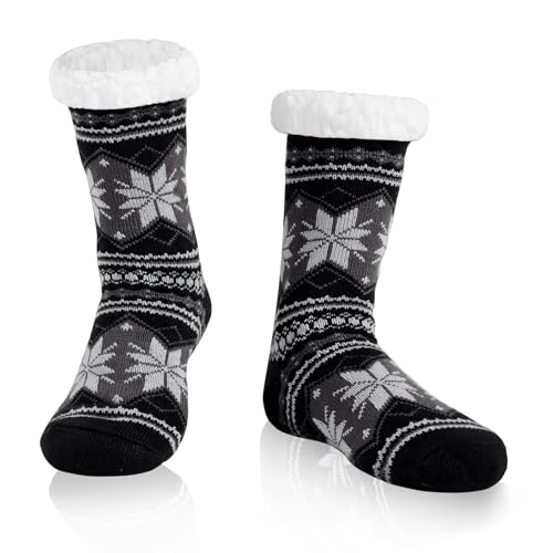 WOTENCE Chaussettes Chaussons Homme Hiver Chaudes Antidérapantes Chaussette Pantoufle Thermiques Polaire, Cadeau Noel Anniversaire(Flocon Noir)