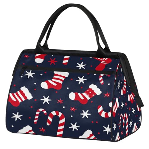 Mexpekil Sac de sport, sac de voyage, sac de voyage, sac de week-end, pour homme et femme, Chaussette de Noël et sucre d'orge, Sac de voyage