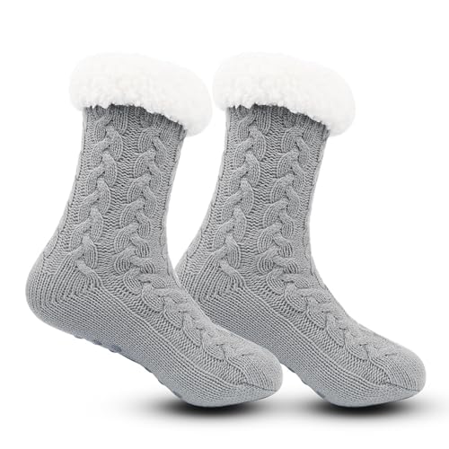 FOSDICK Chausson Chaussette Femme Homme, Chaude Chaussettes Pantoufles, Polaire Chaussettes Antidérapantes, Chaude d'hiver Chaussettes de Noël, de Noël Chaussettes douillettes, Cadeau pour Femmes