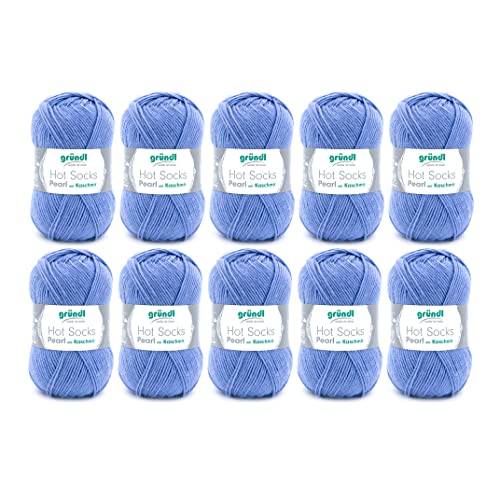 Gründl Hot Socks Pearl en Laine Unie (Laine de Chaussette Douce en 75% Laine mérinos, 20% Polyamide, 5% Cachemire, 50 g / 200 m, Taille d'aiguille : 2,5-3, 10 x 50 g), Bleu
