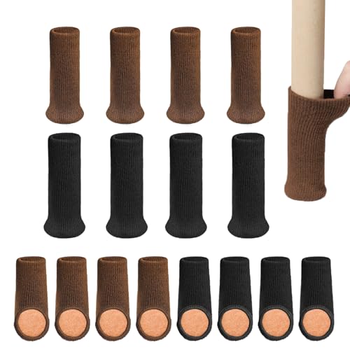 Chaussette Chaise pour Pieds de Chaise, 16pcs Protection Pied de Chaise Tricotée, Chaussettes Antidérapante Mobilier en Feutre, Patins Antidérapants Foot Contre Rayures et Bruit, Noir et Marron