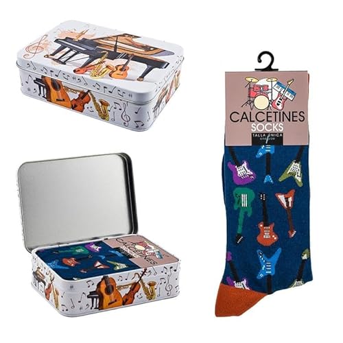 DRW Pack Cadeau Chaussettes avec Guitares électriques Couleur Bleue Taille Unique en métal Taille Unique