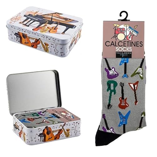 DRW Pack Cadeau Chaussettes avec Guitares électriques Couleur Grise Taille Unique en métal Taille Unique