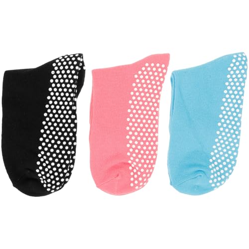 LRXIYODE 3 paires Chaussettes Trampoline Femme Antidérapantes Coton Respirantes Lot de Couleurs Assorties pour Yoga et Sport