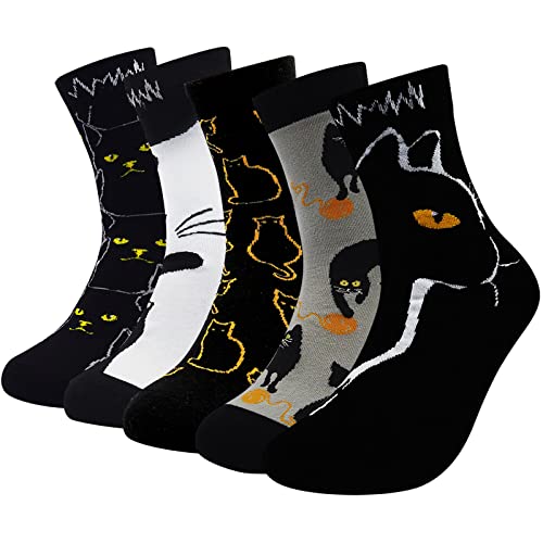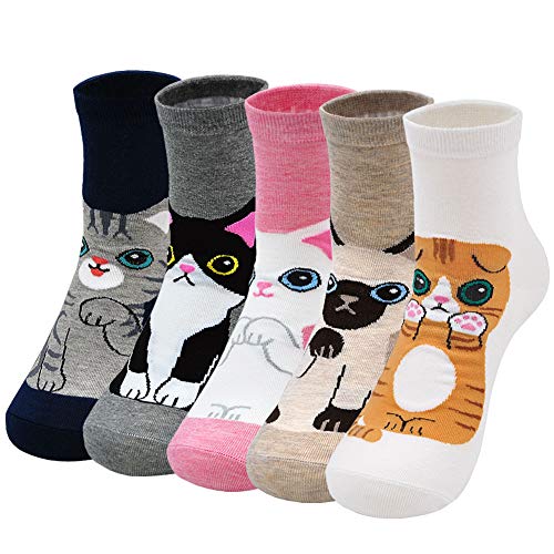 ZFSOCK Chaussettes Femme Fantaisie Coton: Socquettes Drole Motif à Chat Animaux Mignon Drôle Humour Rigolotes Amusante Déguisement d'halloween, Miaou, EU 35-42, 5 Paire