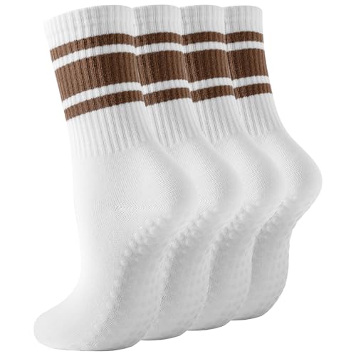 Xbessc 4 Paires Chaussettes Antidérapantes Femme, Coton Yoga Chaussettes Pilates, Chaussette Antidérapante Longues Multicolore Rétro, Chaussette Hautes Slouch Empilées pour Yoga Ballet Pilates 36-41