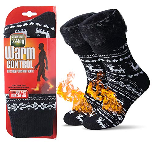 JARSEEN Hiver Thermiques Chaussettes Chaudes Laine Doublé Chaussettes Épaisse Neige Cadeau Femme Homme (Nouveau Noir, 39-45)