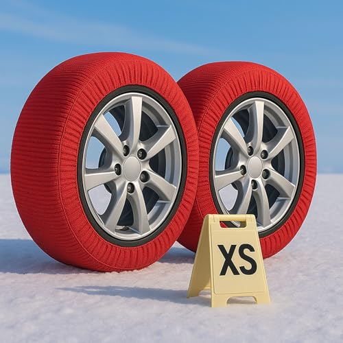 2 Chaussettes de neige homologuées EN 16662-1, Couleur Rouge, Taille XS, Chaînes à neige textiles, Snow Sock pour Auto (Rouge, XS)