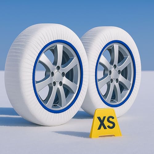 2 Chaussettes de neige homologuées EN 16662-1, Couleur Blanc, Taille XS, Chaînes à neige textiles, Snow Sock pour Auto (Blanc, XS)