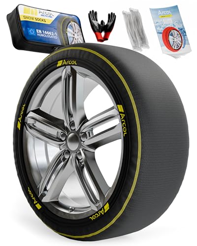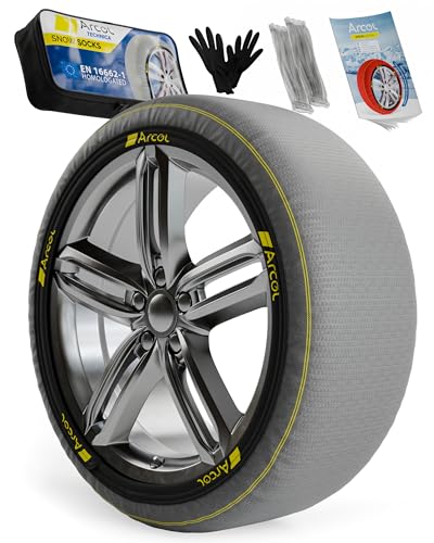 ARCOL Chaussettes Neige Textile Homologuées EN 16662-1 /// ArcticPro Chaînes Neige Tissu, Installation Facile, Conduite Silencieuse et Sécurité Maximale - Mesures Dét. à l’Intér. (ArcticPro, XL)