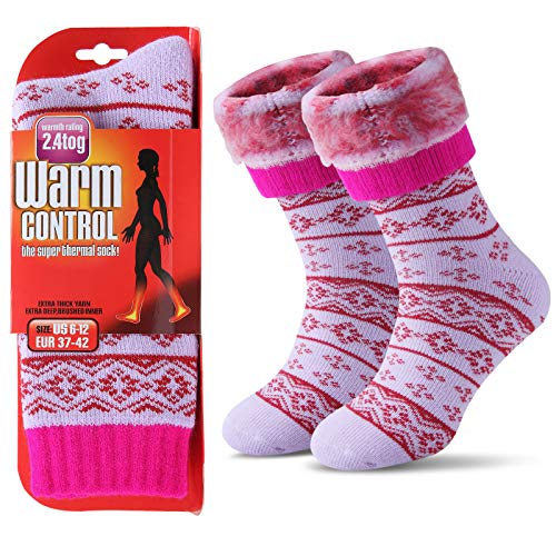 JARSEEN Hiver Thermiques Chaussettes Chaudes Laine Doublé Chaussettes Épaisse Neige Chaussettes Cadeau Femme Homme (Violet, 36-42)