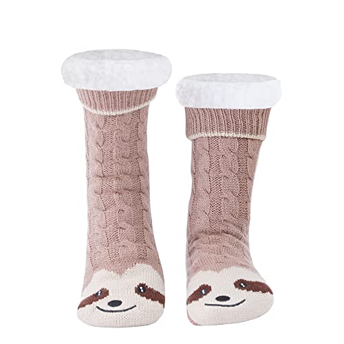 WOTENCE Chaussettes Antidérapantes Femme Chaud Fuzzy Doublé Mignon Animal Hiver Maison Pantoufle Chaussettes Cadeau De Noël (Sloth)
