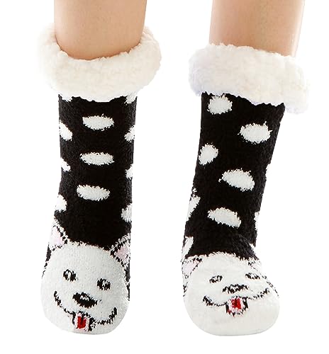 WOTENCE Chaussettes Antidérapantes Femme Chaud Fuzzy Doublé Mignon Animal Hiver Maison Pantoufle Chaussettes Cadeau De Noël (Chien)