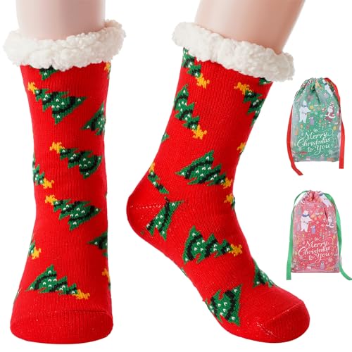 BISOUSOX Chaussettes de Noël moelleuses pour femme - Chaudes, douces et thermiques - Antidérapantes - Chaussettes de Noël - Cadeau pour mère et petite amie - 37-40, 1 paire de sapin de Noël, 4/7 UK