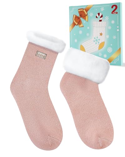 SukModen Lot de 2 paires de chaussettes chaudes pour femme - En laine moelleuse - Chaussettes d'hiver épaisses - Respirantes - Cadeaux pour femme - Chaussettes de Noël - Taille 36-42 - Avec boîte