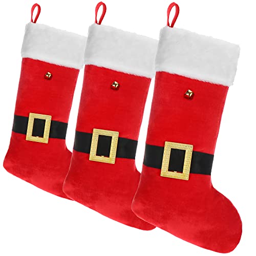 com-four® 3X Santa Claus Bas XL garnir - Chaussettes de Noël à accrocher - Bottine Velours du Père Noël - Chaussettes