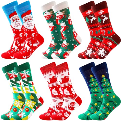 Chaussettes de Noël Homme Femme 6 pairs Christmas Socks Coton Cadeau Bonhomme en Pain D'épice Renne du Père Noël Chaussettes Multicolores 39-46