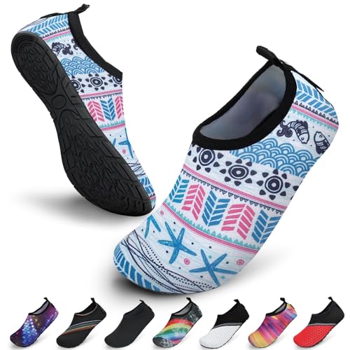 SAGUARO Chaussures Aquatiques Chaussons de d'eau Plongée Chaussettes Aqua pour Piscine et Plage Sports Nautiques Natation Surf Voile Mer Rivière pour Homme Femme (Bohême Blanc,42/43 EU)