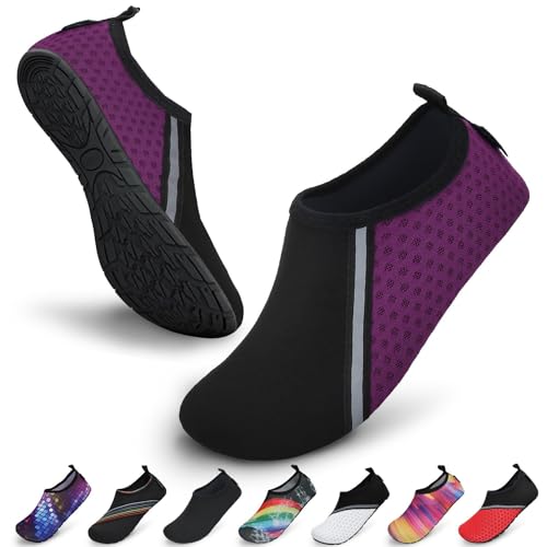 SAGUARO Chaussures Aquatiques Chaussons de d'eau Plongée Chaussettes Aqua pour Piscine et Plage Sports Nautiques Natation Surf Voile Mer Rivière pour Homme Femme (Violet,36/37 EU)