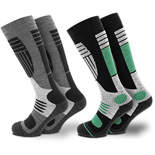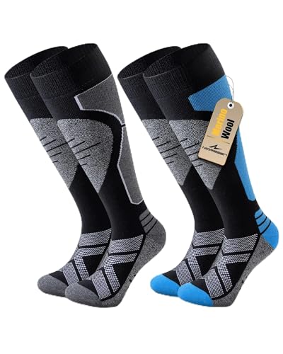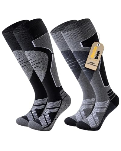 Niorasen 2 Paires Chaussettes de Ski Homme Femme Laine Mérinos, Chaussette Ski et Rembourrées Chaudes Thermiques, Pour Randonnée, Cyclisme, Snowboard, Sport Hiver