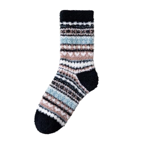 Generisch Chaussettes douillettes classiques et confortables pour femme - Respirantes - Élastiques et moelleuses - Chaussettes thermiques pour femme - Chaussettes d'hiver douillettes, Noir 2, Taille