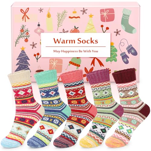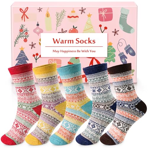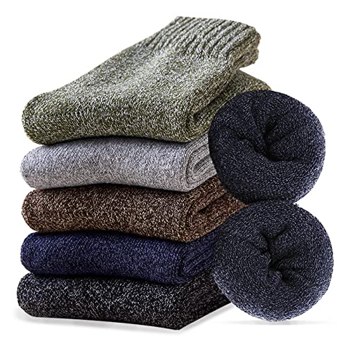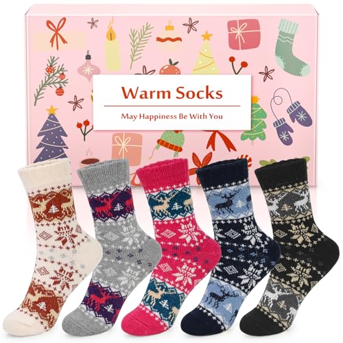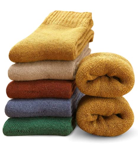 Airabc Lot de 5 paires de chaussettes thermiques pour femme - Chaussettes en laine - Chaussettes d'hiver chaudes pour femme - Chaussettes en tricot épais - Chaussettes d'hiver pour femme - Colorées