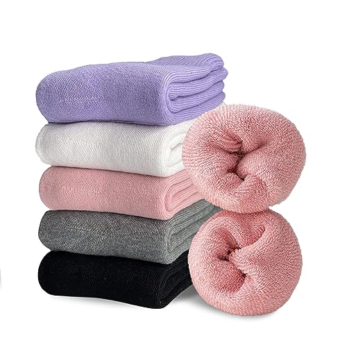 Airabc Chaussettes Femme Hiver, 5 Paires Chaussettes Thermiques pour Femme, Chaussettes Chaudes Femme, Chaussettes de Sport Femme Cadeau Femme