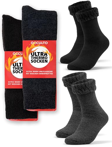 Occulto Chaussettes Thermiques Femme & Homme Lot de 2 (modèle: Yuki) Noir Anthracite 35-38