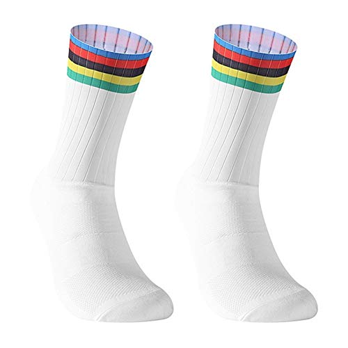 REPWEY 1 Paire de Chaussettes de Cyclisme Aero sans Couture en Silicone antidérapantes de Sport Motif Respirant Chaussettes de Course de vélo de Route (Color : A White)