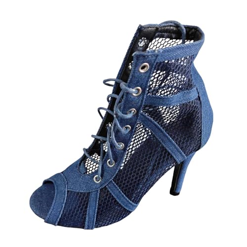Heels Dance Shoes Chaussures Confortables Femme Talon Haut Sandales Fermées De Jazz Chaussure Enfant Fille Sexy Danse Salon avec Strass Mariage Bottine Chausson Ballerines Vintage 50 Bleu Marine