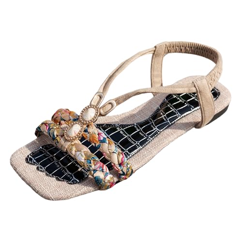 Générique Sandales bohèmes tressées ajourées pour femmes, semelle fine et strass, ornées d'un bout en forme de poisson. Chausson Bottine (F, 40)