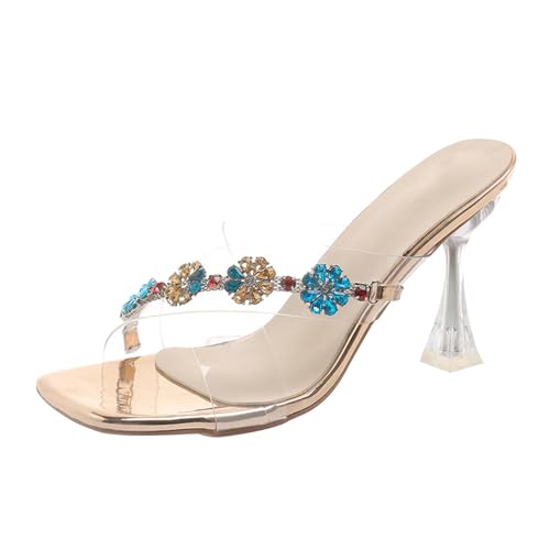 Chaussure Talon Femme Confort Sandale Petit Talon Sandales Et Pantoufles À Talons Hauts Épais Et Transparents pour Femmes,Sandales Pantoufles D'Été Chausson Antiderapant Femme Mule Été (Khaki,35)