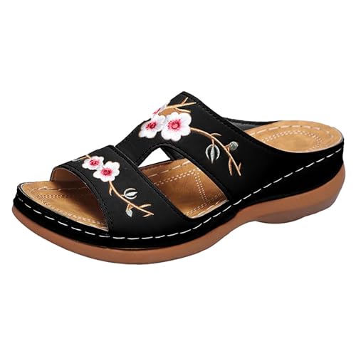 Uwdiohq Sandales Pour Femmes Compensées Noires Grande Largeur (Silver, 39) Chausson Orthopedique Femme Mule Chaussure Compensee Ete Chaussures Été Confortable Et Mules Orthopédique Sandale Plage