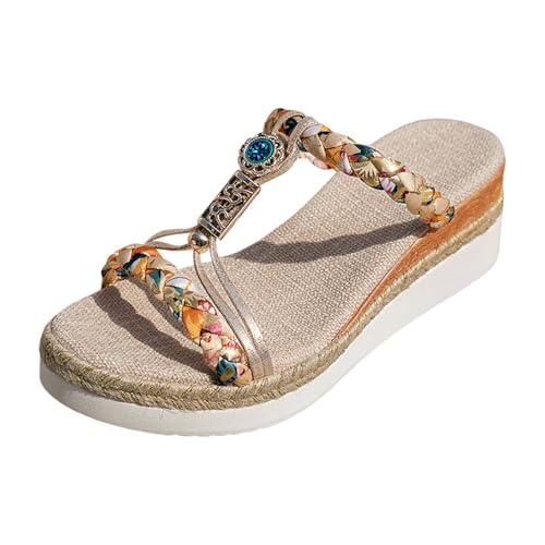 Générique Chausson Piscine Mule Compensee Femme Été Sandales Plates Sexy Pour Femme Avec Anneau D'orteil De Plage Tendance Strass Été Bohème Confortable Boucle Printemps Un Orteil Perlé Falt
