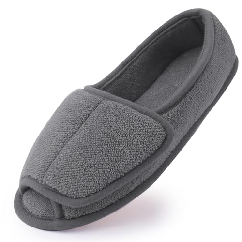 Git-up Chaussons Femme Bout Ouvert Coton, Chaussures de Maison Réglables en Mousse à Mémoire de Forme, Pantoufles Femme Confortable Indoor Slippers, Gris 7