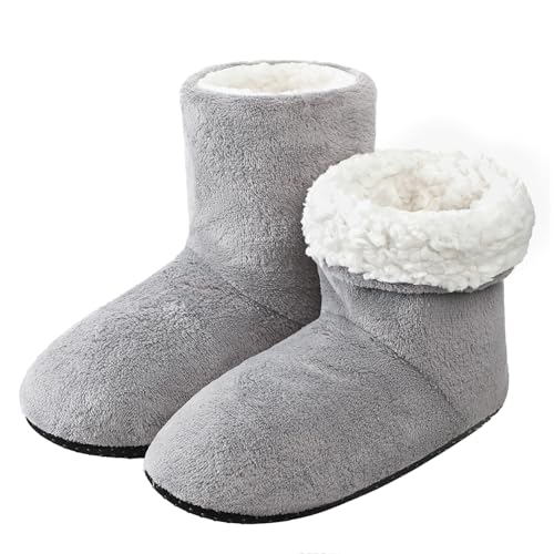 Generisch Chaussons femme chaussons de chalet hiver chauds peluche fourrure chaussons fille moelleux doublés chaussons maison confortables pantoufles chaussons montants, gris, 28 EU
