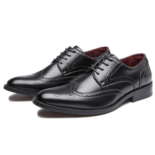 ENWIND Hommes Chaussures de Mariage Chaussures Formelles Aile Bout Oxford Lacets Bureau Chaussures Classic Chaussure Derby,Noir,42 EU