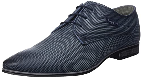bugatti Homme Chaussure Basse Business en Cuir de Haute qualité, Derby au Design Minimaliste, Bleu, 48 EU