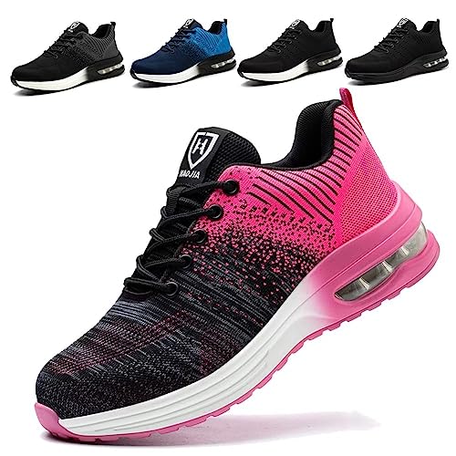 ISOOUS Chaussure de Securité Homme Femme Coussin d'air Baskets de Securite Embout Acier Protection Respirantes Chaussure de Travail Rose 36