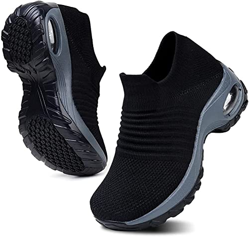 ticticlily Baskets de Marche Femmes Slip-on Sneakers Confortable Casual Chaussure Baskets sans Lacets Chaussure de Running Marche Sport Casual Fitness Sneakers B Noir 40 EU