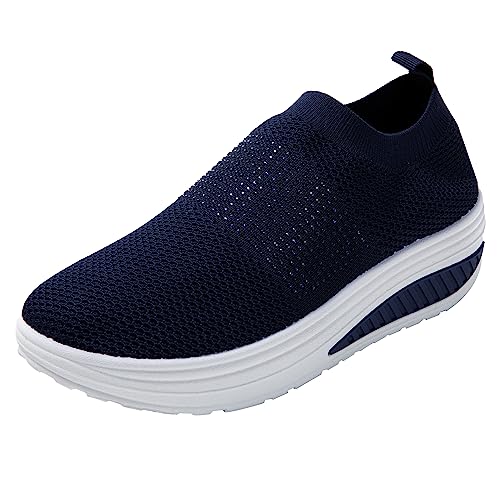 JOMIX Chaussure sans Lacets Femmes Chaussures de Marche Femmes Chaussures Slip on Sneakers Chaussure en Maille Respirantes Légères Confortables (Marine, 39)