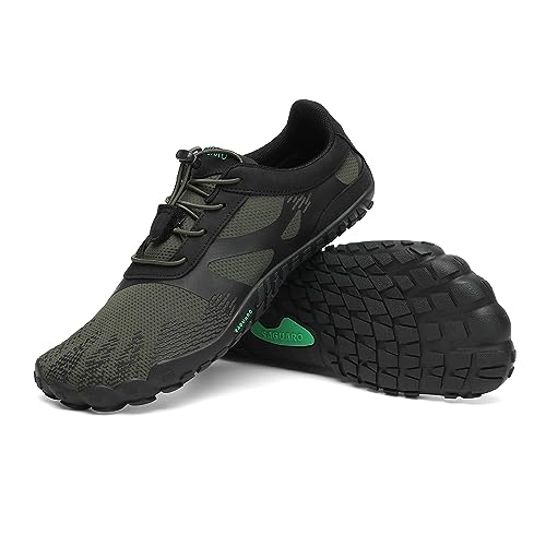 SAGUARO Chaussures Minimaliste Homme Femme Barefoot Shoes Chaussures Pieds Nus Antidérapantes Barefoot Chaussures de Trail Chaussure Randonnée pour Semelle Zero Drop Vert Foncé EU GR.47