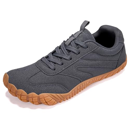 AONETIGER Chaussures Pieds Nus Homme Femme Légère Barefoot Shoes Respirantes Larges Chaussure Minimaliste Trail Antidérapante Extérieur Chaussures de Running (828 Gris,43EU