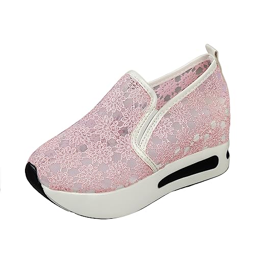 Chaussures de marche à bascule pour femme - En maille respirante - Semelle compensée - Chaussures orthopédiques basses - Légères et confortables, rose, 38 EU