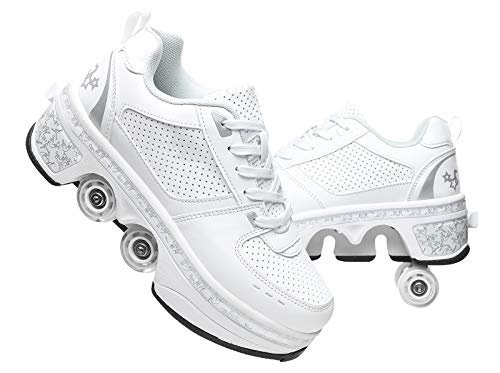 Mateju Chaussures à Roulette Garçons Filles, 2 en 1 Patins à roulettes Retractable Enfant avec 4 roulettes Chaussures de Skateboard Réglables Adolescents pour Intérieur Extérieur