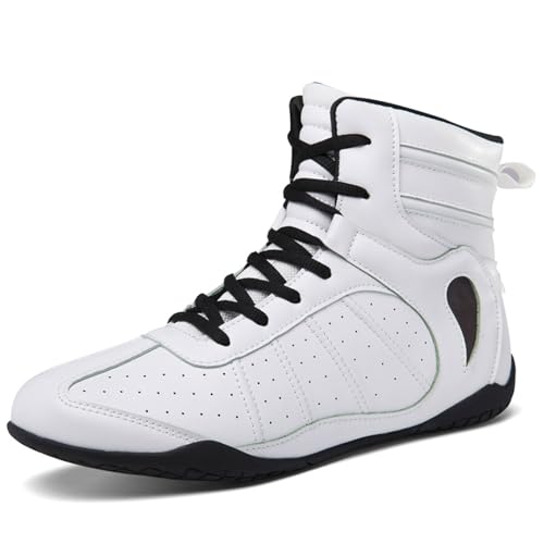 Zenithuxe Chaussures de Lutte pour Hommes,Femmes.Chaussures de Boxe.Chaussure de Boxe Anglaise.| Semelle en Caoutchouc | Noir/Blanc | Tailles 35-46.