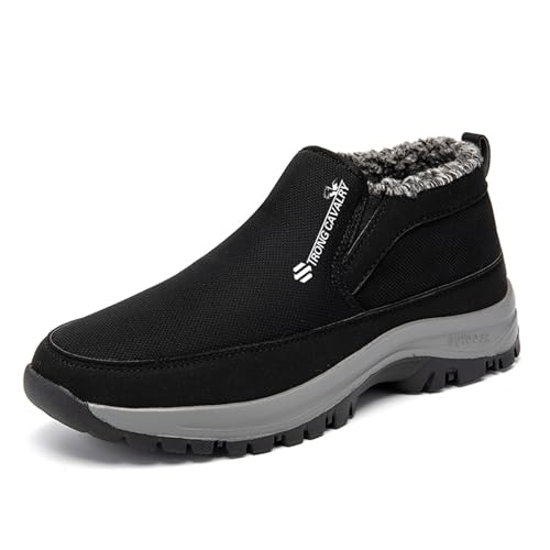 Générique Chaussures De Sécurité Hommes Cuisine Chaussures de Sport Hiver Homme Confortables Décontractées en Flanelle Chaude avec Semelle Antidérapante pour Marche Extérieure (Black, 48)