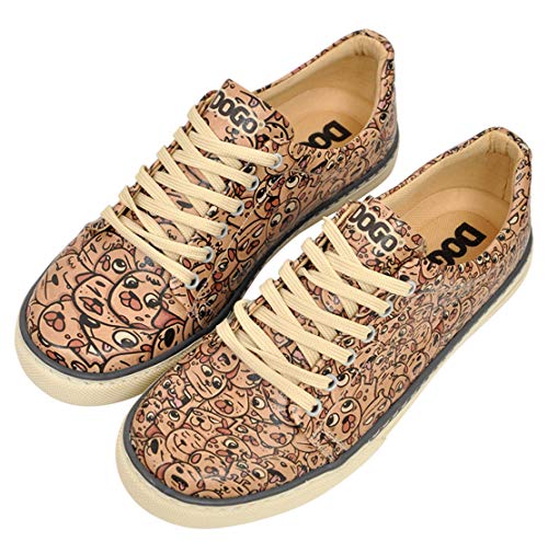 DOGO Vegan en Cuir Multicolore Mode Baskets pour Femme - Chaussures de Marche Confortables et Décontractées - Fait à la Main - Smiley Dogs Design Baskets - Taille 40