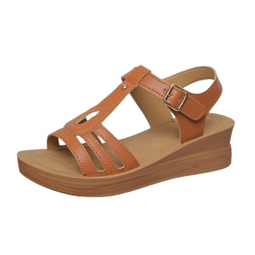 Sandales Femme Été Confortable Sandales Compensées Plage Sandale Confort Women Sandals Chaussures Compensees D Ete Plateforme Talon Compensé Petit Chaussure Pour Marron D'Été Vintage 42 43 Pieds